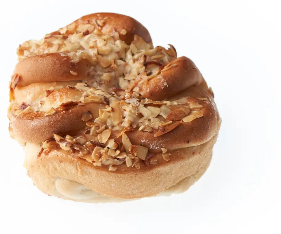VETEMJÖL, Fyllning (Socker, vatten, druvsocker, margarin (vegetabiliskt fett (palm, shea, raps), vatten, salt, emulgeringsmedel (E471, E475 av veg. fett), arom, antioxidationsmedel E330, färgämne E160a), modifierad potatisstärkelse, potatisstärkelse, MANDEL, potatisfiber, stabiliseringsmedel (E401, E440), konserveringsmedel E202, arom, salt), vatten, vegetabilisk olja (palm, raps), socker, jäst, MANDEL, glukossirap, salt, vegetabiliskt fett (palm), emulgeringsmedel (E471, E472e), druvsocker, rapsolja, MJÖLKPULVER, emulgeringsmedel E322 (SOJALECITIN), mjölbehandlingsmedel E300, naturlig arom (mandel), surhetsreglerande medel E330. Kan innehålla spår av ägg, hasselnöt, valnötter och sesamfrö.