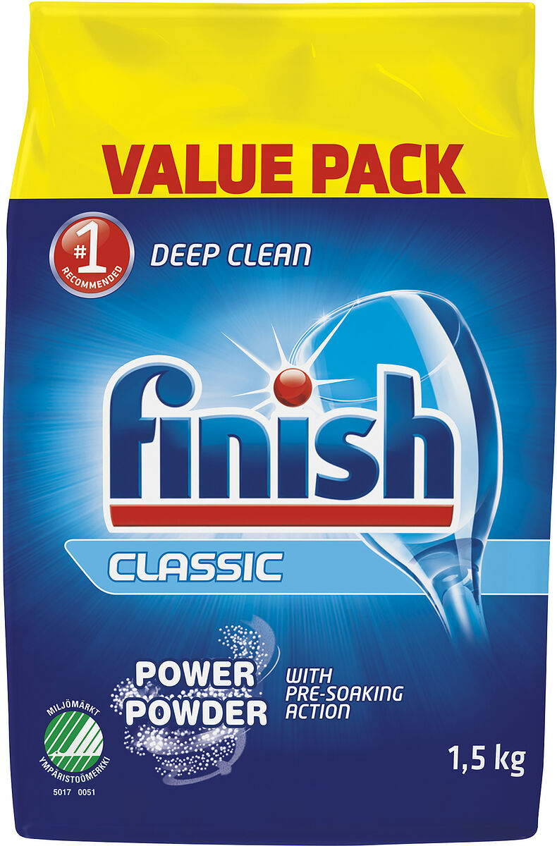 Upplev en klassisk renhet varje gång med Finish Classic diskmedelspulver som får din disk att skina. Från fastbränd lasagne till smutsiga pannor, vår Finish Classic Pulver hjälper dig att få dem rena. För ett optimalt resultat, använd våra Finish Pulver tillsammans med Finish Salt och Finish Spolglans.