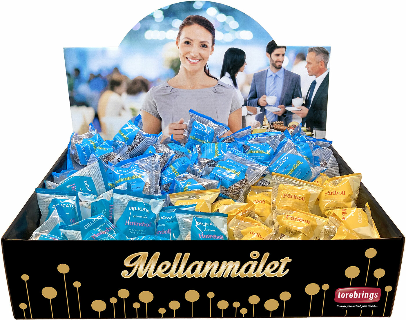Mellanmålet 100 bollar i mål levereras med utsökt goda styckförpackade "bollar". Mellanmålslådan innehåller 60 st Delicatobollar, 20 st Havrebollar och 20 st Pärlbollar från Delicato. Denna låda ger Dig ett varierat antal goda bollar.