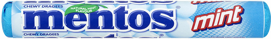 Mentos med mintsmak är tuggvänliga godistabletter som fräschar upp andedräkten. Tabletterna är ovalformade med ett hårt skal och mjuk kärna.
