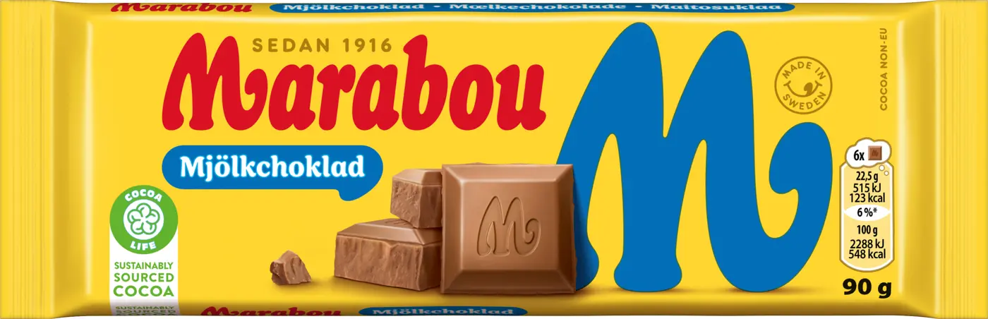 Marabou Mjölkchoklad, en riktig klassiker! En chokladkaka med vår älskade Marabou Mjölkchoklad i 90g som passar för alla tillfällen. Genom Cocoa Life, vårt program för en hållbar kakaoproduktion, bidrar Marabou till att kakao odlas på rätt sätt, för att skydda planeten och respektera mänskliga rättigheter i vår värdekedja. Läs mer om Cocoa Life här www.cocoalife.org.