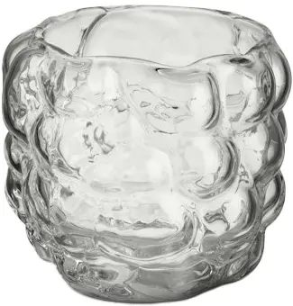 Serien Moss från Kosta Boda är skapad ur återanvända gamla formar från Kosta Glasbruk som karvats ur för hand för att få fram en unik, böljande och levande yta i glaset. Ljuslyktan tillverkas nu i klarglas och ger en dimension av liv där skenet bryts av i böljande former.