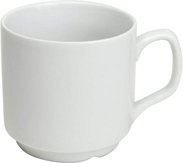Klassisk mugg med öra. Muggen kan enkelt staplas för att bespara plats. Tillverkad i slitstarkt fältspatporslin.