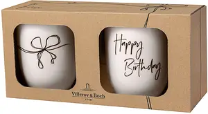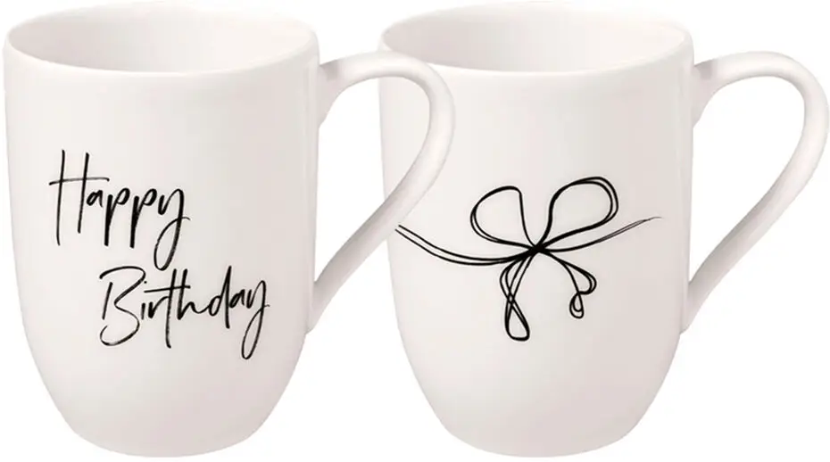 En original och bestående födelsedagspresent! Detta exklusiva tvådelade muggset från Villeroy & Boch är en perfekt gåva för att fira någon speciell. Muggarna, tillverkade i premium porslin och vackert förpackade, bär en unik födelsedagsdedikation som gör varje kaffepaus till en extra festlig stund. Setet är idealt för dig själv eller som en överraskning till någon du håller kär. Ge bort något personligt och stilfullt för att göra födelsedagen ännu mer minnesvärd! Vad ska ditt födelsedagsmotiv vara?
