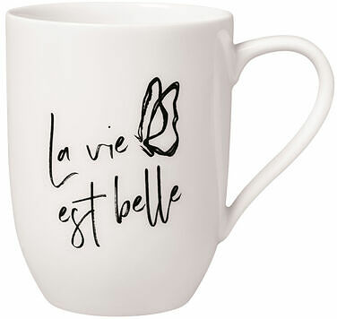 Premiumporslinsmuggen från Statement-kollektionen är en högkvalitativ och snygg mugg för vardagsbruk - från kaffe på morgonen till te på eftermiddagen eller punch på kvällen. Vackert budskap, vackert material. Den svarta filigranbokstäverna på koppen ger en elegant touch och förmedlar också ett positivt budskap.