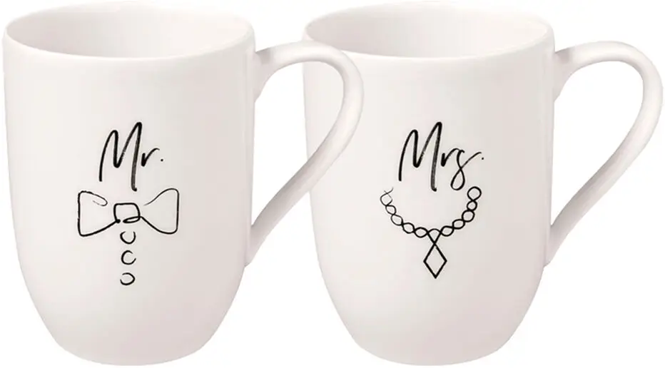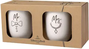 Den perfekta presenten för nygifta eller för att fira ett speciellt par! Detta exklusiva muggset från Villeroy & Boch är en tidlös och elegant gåva som hyllar kärleken. De vackert förpackade muggarna i premium porslin är prydda med "Mr" och "Mrs" på varje mugg, vilket gör dem till en personlig och bestående påminnelse om den stora dagen. Oavsett om det är för ett bröllop, årsdag eller som en romantisk överraskning, är detta setet en vacker gest för alla par. Ge bort en gåva som varar och uppskattas – ett stilfullt sätt att fira gemenskapen!