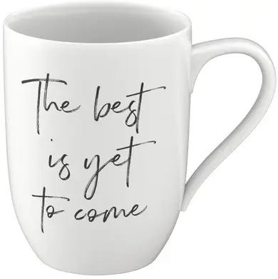 Din mugg, ditt budskap! Vår populära mugg levererar nu ett tydligt och inspirerande statement – perfekt för dig själv eller som en unik present till någon speciell. Med texten "The best is yet to come" på ena sidan ger denna mugg en positiv påminnelse varje gång du tar en kaffepaus. Den stilrena vita porslinet gör att den passar perfekt ihop med många olika samlingar och ger oändliga kombinationsmöjligheter. Vilket motto talar till dig? Ge bort en mugg med mening och inspiration!
