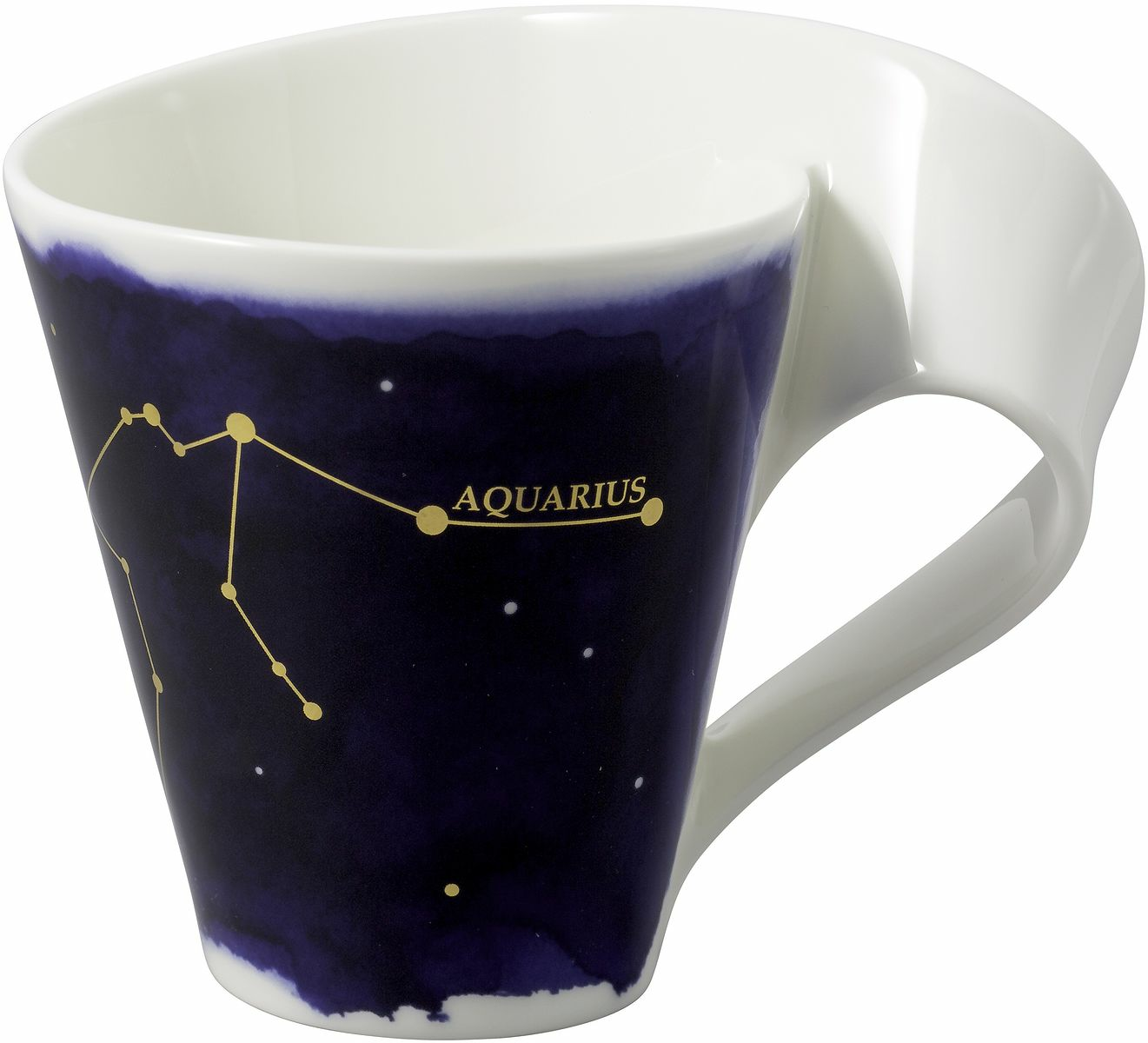 Följ stjärnorna och ge bort en himmelsk gåva! Vår NewWave Stars-kollektion, inspirerad av stjärnorna, presenterar det finaste porslinet med zodiakens vackra tecken. Denna eleganta mugg pryds av stjärnbilden Vattumannen, med ett sofistikerat realguld-motiv som glänser på den konstnärliga, mörkblå natthimlen. Perfekt som en personlig present till någon du håller kär, eller varför inte unna dig själv en bit av universums magi? Sträck dig mot stjärnorna och ge bort en mugg som sprider både skönhet och stjärnklart nöje!