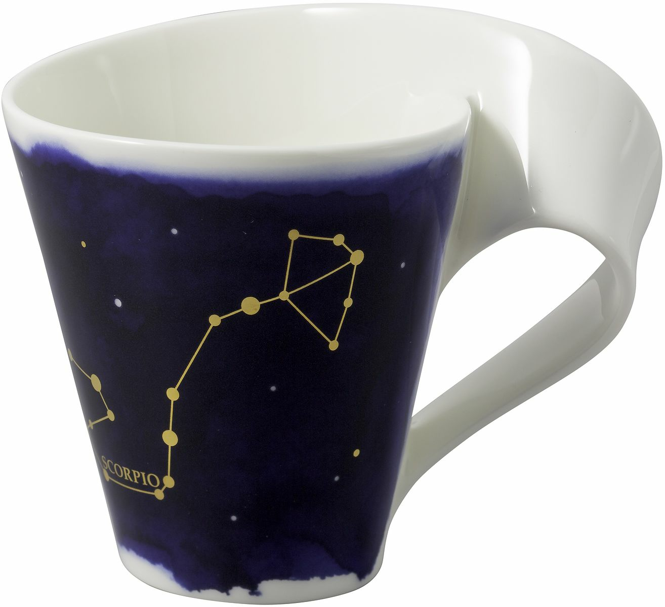 Låt stjärnorna guida dig till den perfekta gåvan! NewWave Stars-kollektion är under en lycklig stjärna och erbjuder det finaste porslinet för att fira stjärntecknen. Ge bort en mugg med det personliga stjärntecknet för någon du håller kär, eller unna dig själv en himmelskt vacker stund. Denna eleganta mugg visar stjärnbilden Skorpionen, med ett fint realguld-motiv som skimrar på den konstnärliga mörkblå natthimlen. En unik och stilfull detalj som lyser upp varje kaffepaus. Sträck dig mot stjärnorna och ge bort något alldeles extra!