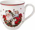 Muggen i högkvalitativ porslin med ett nostalgiskt mönster av Jultomten är perfekt för att njuta av varma drycker under kalla vinterdagar och den är även en idealisk julklapp.