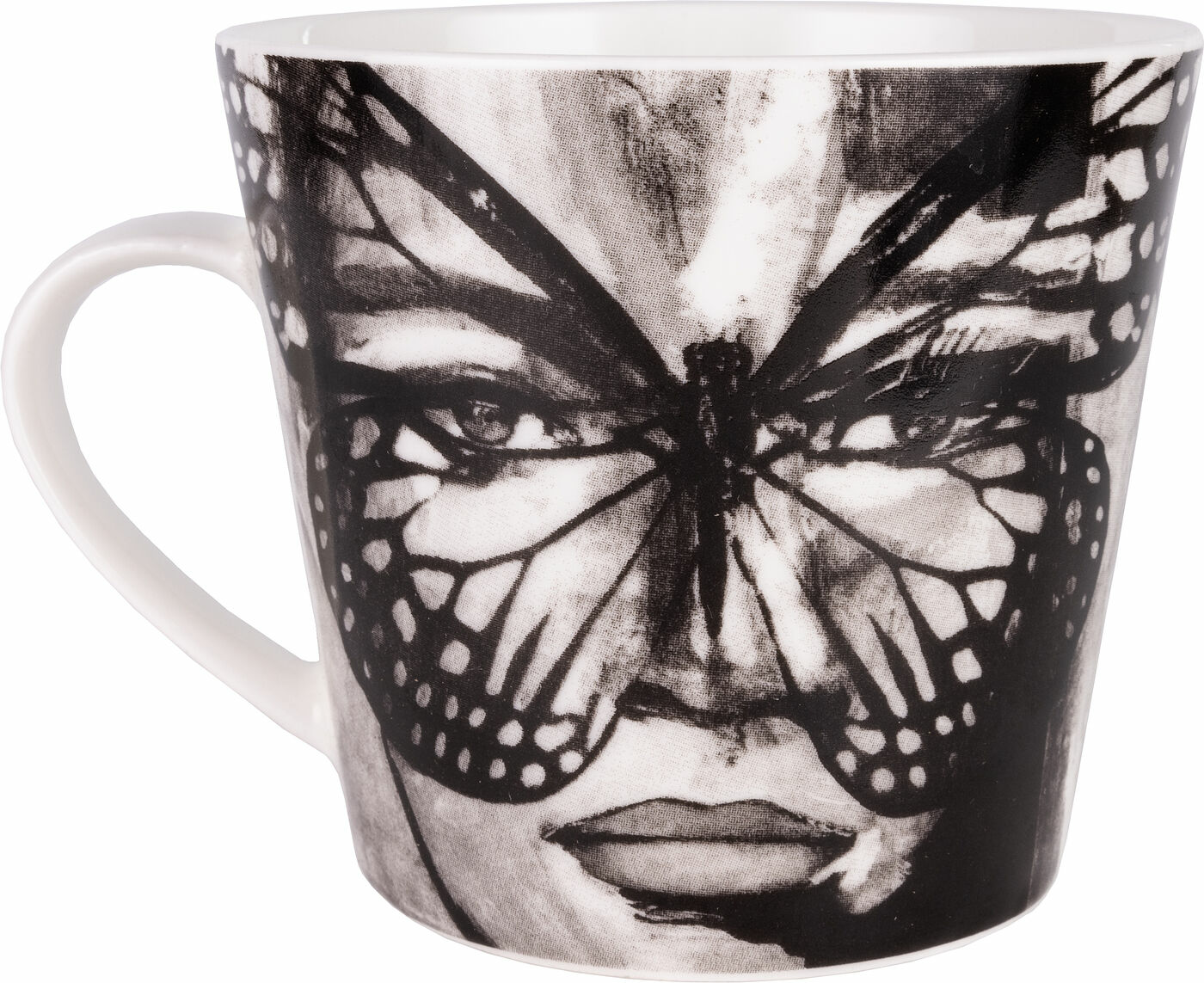 Mugg med öra 40 cl Golden Butterfly svart/vit Carolina