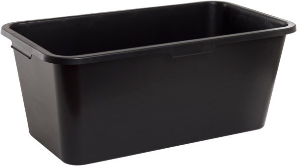 Rejäl och stabil rektangulär murbruksbalja 55L i svart återvunnen plast.