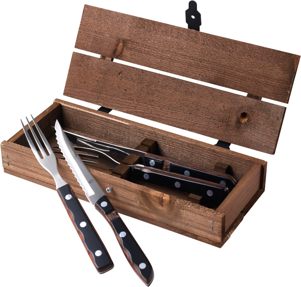 Ett mycket robust och vackert bestick. Den danska designern och arkitekten Bent Severin har utformat det populära grillbesticket i högsta kvalitet, och i en utsökt materialkombination. Skaftet är gjord av genuin Rosenträ, medan resten av besticket är gjort i högglanspolerad 18/8 rostfritt stål.