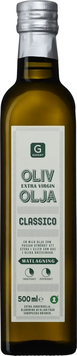 Extra virgin olivolja classico. Mild och smakfull med europeiska oliver. Passar utmärkt att steka i eller som bas i olika dressingar.