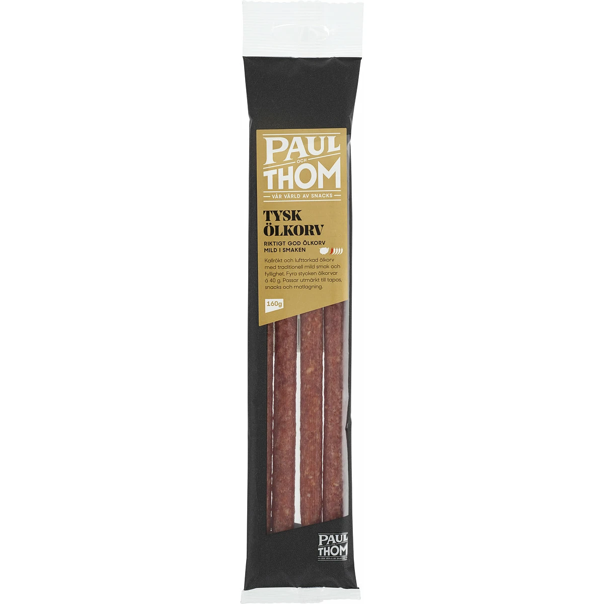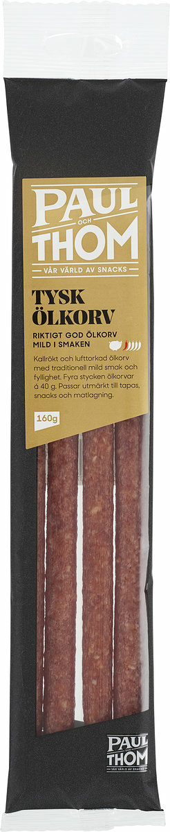 Vår ölkorv tillverkas av en mest framstående tyska tillverkarna. Det åtgår ca 150 gr köttråvara för 100 gr slutprodukt, borgande för den rätta kvaliteten. Mild smak perfekt som snack till en Lager eller fin skivad i en gryta där den ger mustighet, 4 fina ölkorvar per förpackning bjuder runt!