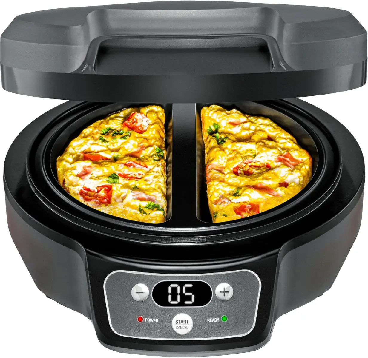 Oavsett om det är till frukost, brunch eller middag. De två non-stick, extra djupa behållarna lämpar sig även för deg, så att till exempel brownies eller små tårtor kan bakas även i denna apparat. Behållarna är jämnt uppvärmda uppifrån och underifrån vilket ger ett mycket jämnt och bra resultat och man behöver inte vända omeletten under gräddningen.