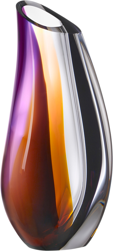 Med varma färger i amber och lila skapar Göran Wärff ännu en klassiker för Kosta Boda. Vaser och fat är helt handgjorda och unika i sitt slag.