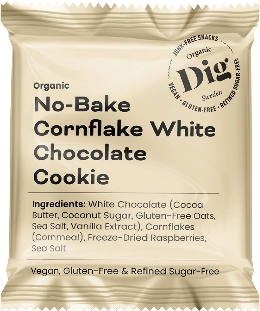 Om du kunde föreställa dig din barndoms flingor som en kaka... skulle det vara den här. Knaprande på majsflingor. Slörpande sockersöt mjölk. Mamma smög i några hallon. Men det är okej, vi gillar det. Är du för gammal för detta? Nej, säger vi. Vissa godsaker är avsedda att avnjutas hela livet. Som alltid är det ekologiskt, veganskt och glutenfritt.
