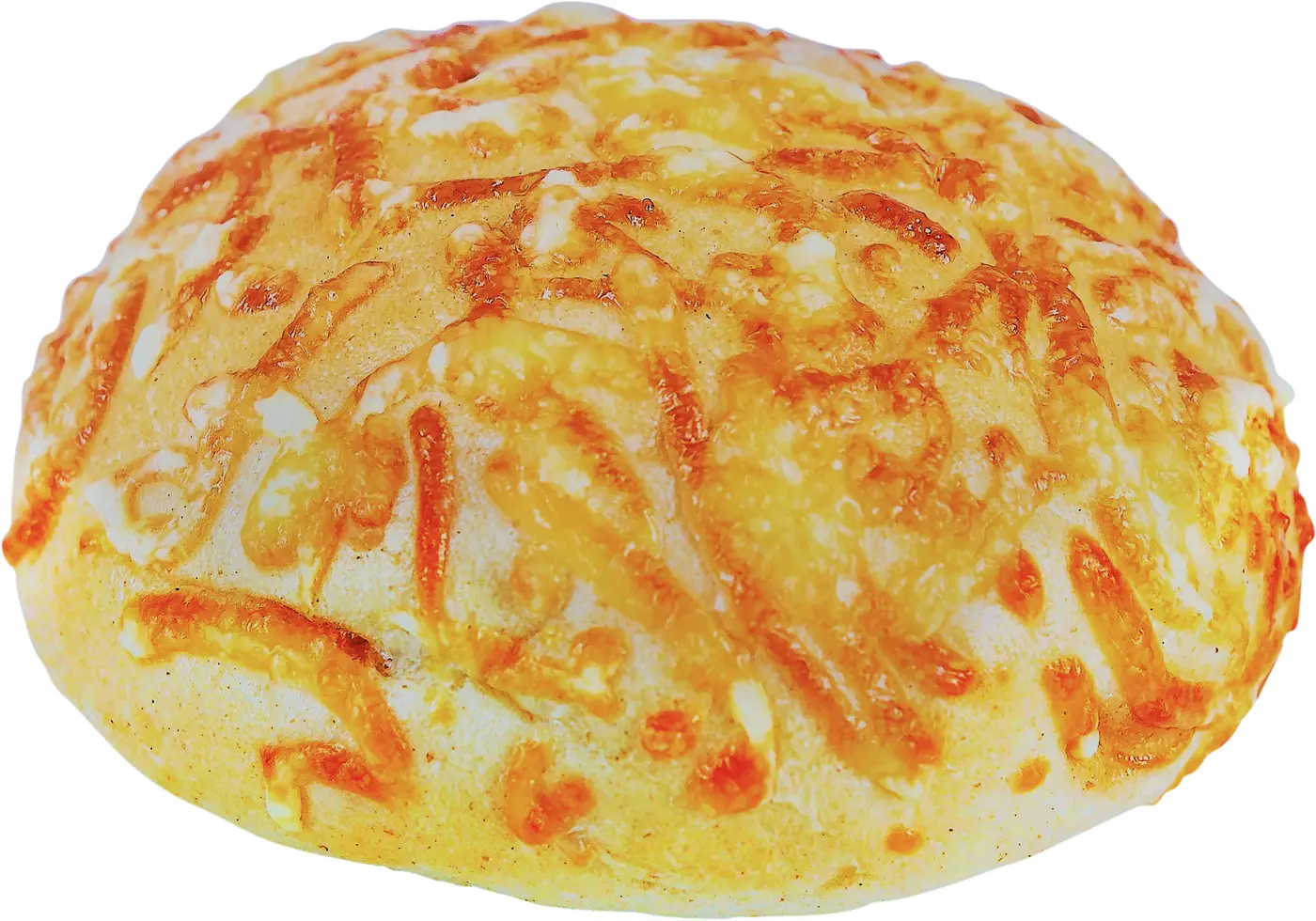 Bröd (VETEMJÖL, vatten, surdeg av FULLKORNSMJÖL, salt, HAVRESKÅLLNING, invertsocker, jäst, maltmjöl av KORN, VETEGLUTEN, druvsocker, rapsolja, emulgeringsmedel (E491), mjölbehandlingsmedel (enzym), riven ost 3% ( ost (pastöriserad KOMJÖLK, mjölksyrakultur, färgämne (E160a), konserveringsmedel (E202, E235), löpe), potatisstärkelse).