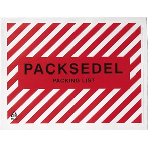 • Självhäftande zebrarandig plastficka för packsedlar, med standardtryck - PACKSEDEL.