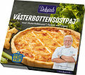Mikrovågsugn 750W Ta den frysta pajen ur folieformen och lägg på en tallrik. Placera tallriken i mikrovågsugnen och värm i ca 3,5 minuter. Låt pajen stå någon minut för att temperaturen ska jämna ut sig. Tillaga i mikrovågsugn