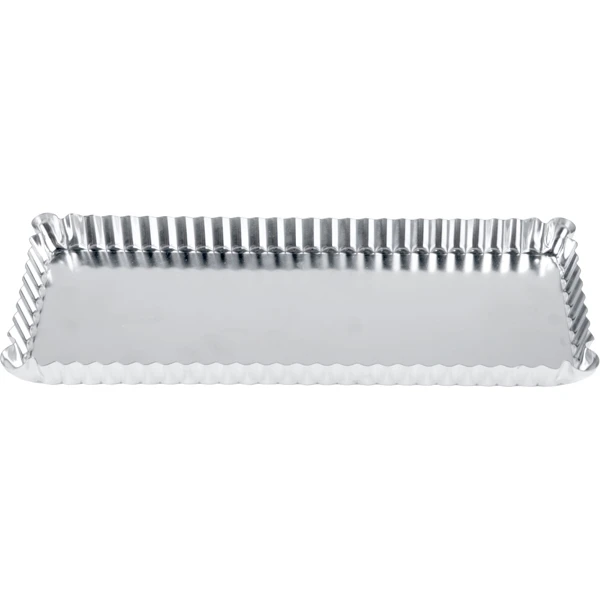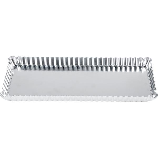 Bleckplåt. Rektangulär pajform med löstagbar botten. Godstjocklek 0,5 mm.