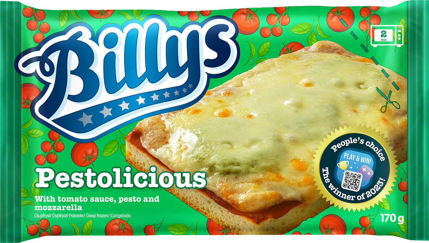 VETEMJÖL (innehåller askorbinsyra, malt av KORN), OST, tomatpuré, vatten, mozzarella (MJÖLK, salt, startkultur, mikrobiologiskt löpe), rapsolja, OSTPULVER, basilika, olivolja, persilja, socker, solrosfrö, modifierad stärkelse, salt, kryddor, jäst, vitvinsvinäger, vitlök.