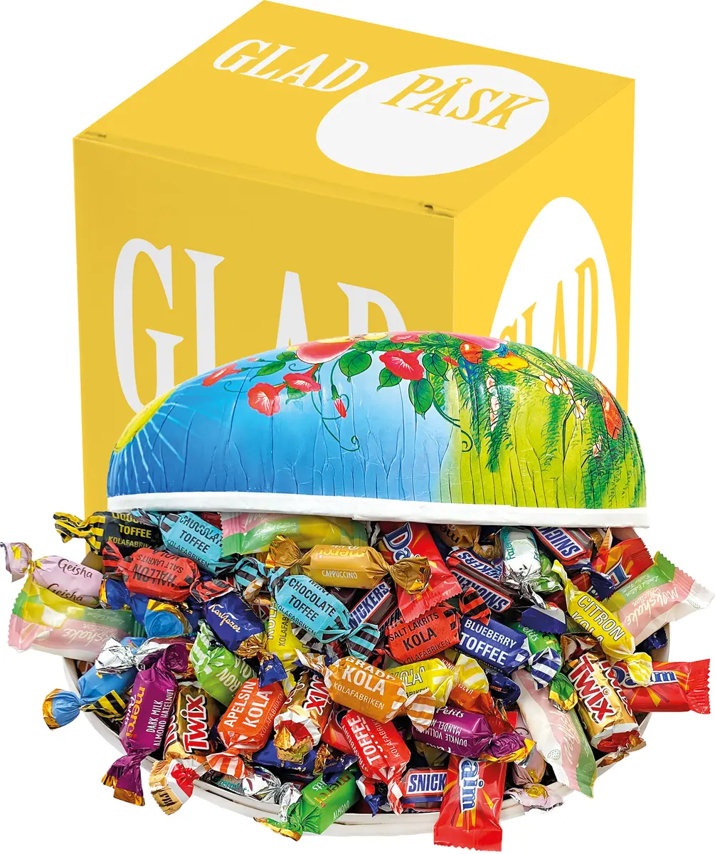 Påskägg 30 cm med Happy Easter Lyx inslagen & twistad godisblandning inkl. gul påskbox Glad Påsk: