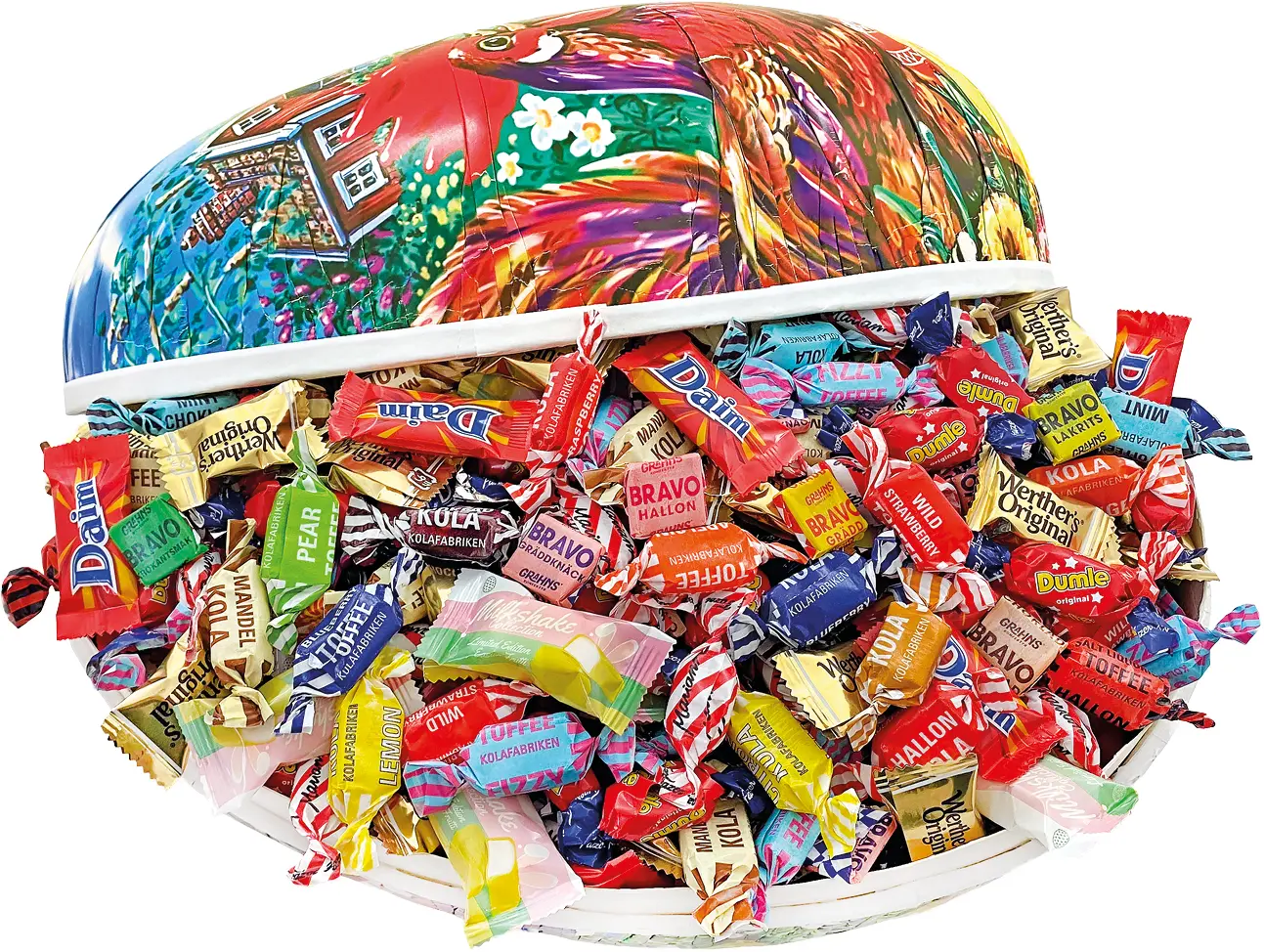 Påskägg 40 cm Jumbo med God Påsk inslagen & twistad godisblandning inkl. ytterkartong: