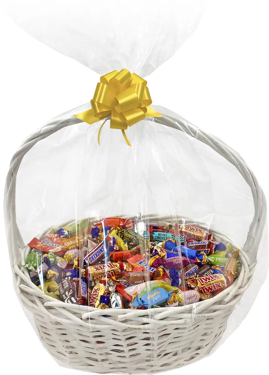 Stilren vitmålad pilkorg fylld med hela 3 kilo inslagen & twistad godisblandning.