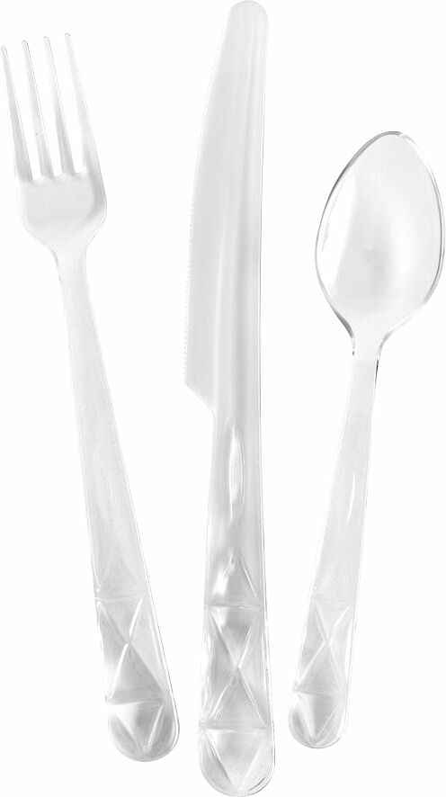 Ett set med bestick i akrylplast. Fyra stycken vardera av gaffel, kniv och sked. Perfekt att ta med ut på picknick, i båten eller varför inte duka finaste sommarmiddagen på altanen.