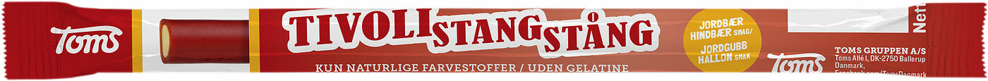 En av Toms populära stänger, vardagligt kallad pingvinstång. Denna Tivolistång är röd med gul fyllning, stången har en härlig fruktsmak. Tivolistången är utan gelatin och innehåller endast naturliga färgämnen. Pingvinstängerna finns i många olika smaker så att alla kan hitta sin favorit.