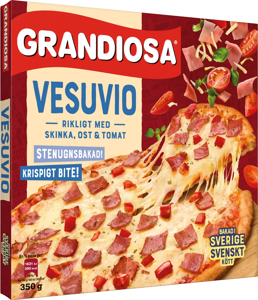 Vesuvio är en riktig pizzaklassiker och enkelhet när den är som godast. Stenugnsbakad i Vansbro och toppad med X-TRA ost, svensk skinka och tomat är Vesuvio det perfekta alternativet när du vill njuta utan att komplicera saker och ting. Ödmjukt och rakt på sak är detta en pizza som är perfekt för tillfället när du vill ha X-TRA mycket lagom.