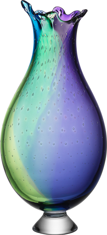 Det är färgstarkt, det är yvigt, det är lekfullt och det bubblar. Det är Kjell Engmans nya serie Poppy! Poppy består av en skål, ett fat och två vaser i olika storlekar. Allt i en limegrön och lila färgställning som drar tankarna till vallmons sprängfyllda frökapsel. Seriens utformning är ett resultat av samarbetet mellan glasblåsarnas kunskap och Kjells öga för det som fängslar.