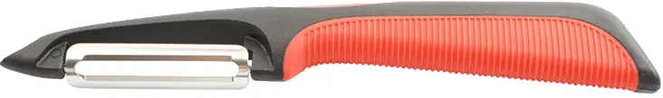 Prim Potatisskalare funkar utmärkt till både potatis och rotfrukter. Tack vare den räfflade silikonkanten i lysande röd färg ligger den stadigt i handen. Dessutom blir den enkel att hitta i lådan med köksredskap.