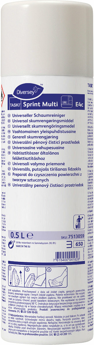 SPRINT MULTI ger ett skum som fäster på lodräta ytor utan att rinna. SPRINT MULTI är enkel och praktisk att använda. Spreja på, torka av, ingen eftersköljning. SPRINT MULTI innehåller inga slipmedel och repar inte. SPRINT MULTI räcker till ca 800 punktrengöringar.