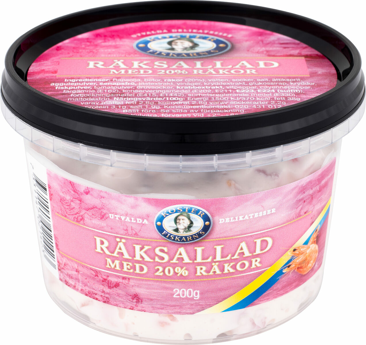Rapsolja, betor, RÄKOR (20%), vatten, socker, salt, ättiksprit, ÄGGULEPULVER, SENAPSFRÖ, jästextrakt, vinäger, kryddextrakt, glukossirap, kryddor, FISKPULVER, tomatpulver, druvsocker, KRABBEXTRAKT, vitpeppar, cayennepeppar, färgämne (E162), konserveringsmedel (E202, E211, E223, E224 (SULFIT)), förtjockningsmedel (E415, E1442), surhetsreglerande medel (E330), maltodextrin.