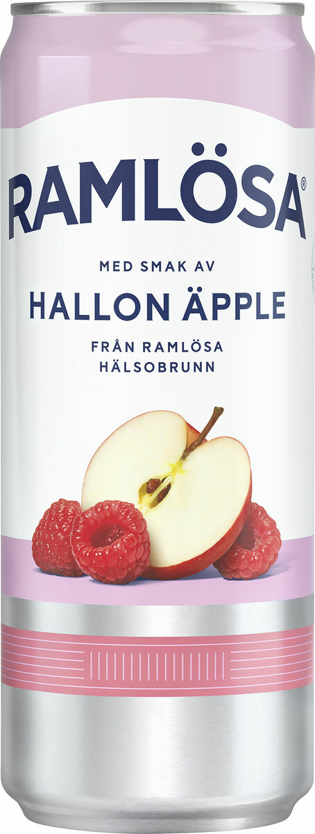 Ramlösa Hallon Äpple har en frisk smak av solmogna hallon och söta äpplen. En törstsläckare direkt från naturen, tappad vid källan, lätt uppfriskad med kolsyra och smaksatt med hallon och äpple.