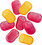 Ingredienser: socker, glukossirap, VETEstärkelse/HVEDEstivelse, surhetsreglerande medel (E270, E325), modifierad stärkelse/stivelse, färgande livsmedel/fødevarer der farver/næringsmidler som avgir farge (koncentrat av svart morot/gulrot/sort gulerod, safflor, batat/sød kartoffel/søtpotet och äpple), aromer, ytbehandlingsmedel (E903).