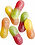 Ingredienser: socker, glukossirap, VETEstärkelse/HVEDEstivelse, modifierad stärkelse/stivelse, surhetsreglerande medel (E270, E325, E330), stärkelse/stivelse, fullhärdat vegetabiliskt fett (ryps, solros/solsikke), färgande livsmedel/fødevarer der farver/næringsmidler som avgir farge (koncentrat av rädisa/radise, morot/gulrot/gulerod, batat/sød kartoffel/søtpotet, safflor och äpple), aromer, färgämnen/farvestoffer (E141, E160a, E100).