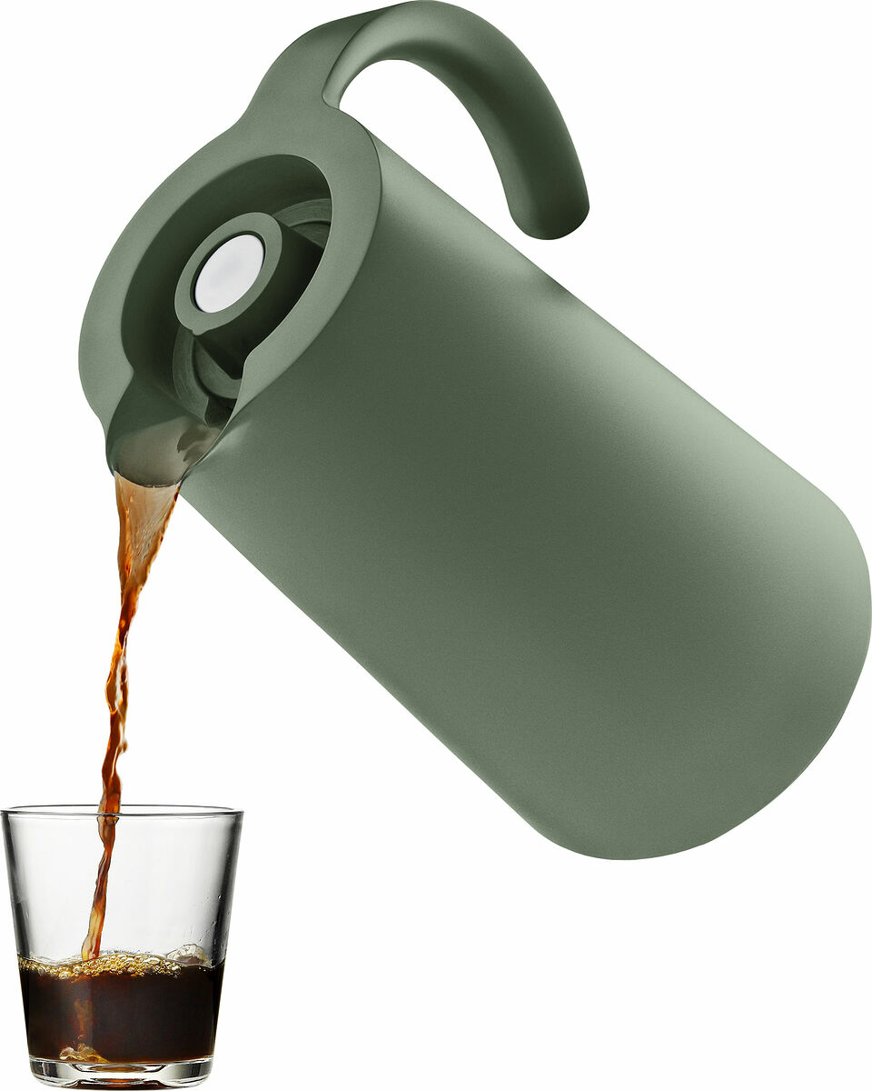 Rise termoskanna har en enkel design och funktion. De dubbla väggarna ger en vakuumeffekt som håller kaffet eller teet varmt i flera timmar. Kannan är dessutom enkel att använda med en praktisk tryckknapp. Tryck en gång på locket för att öppna eller stänga den. Locket är lätt att ta av för att fylla eller rengöra kannan.