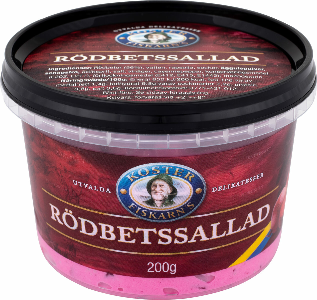 Rödbetor (56%), vatten, rapsolja, socker, ÄGGULEPULVER, SENAPSFRÖ, ättiksprit, salt, vinäger, cayennepeppar, konserveringsmedel (E202, E211), förtjockningsmedel (E412, E415, E1442), maltodextrin.