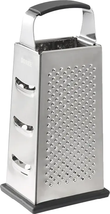 Praktiskt fyrsidigt rivjärn med olika rivytor för ost, grönsaker och rotfrukter. Utrustat med gummifötter som ger stabilitet på bänken och ett bekvämt handtag för säkert grepp. En slitstark klassiker i köket som gör matlagningen enkel.