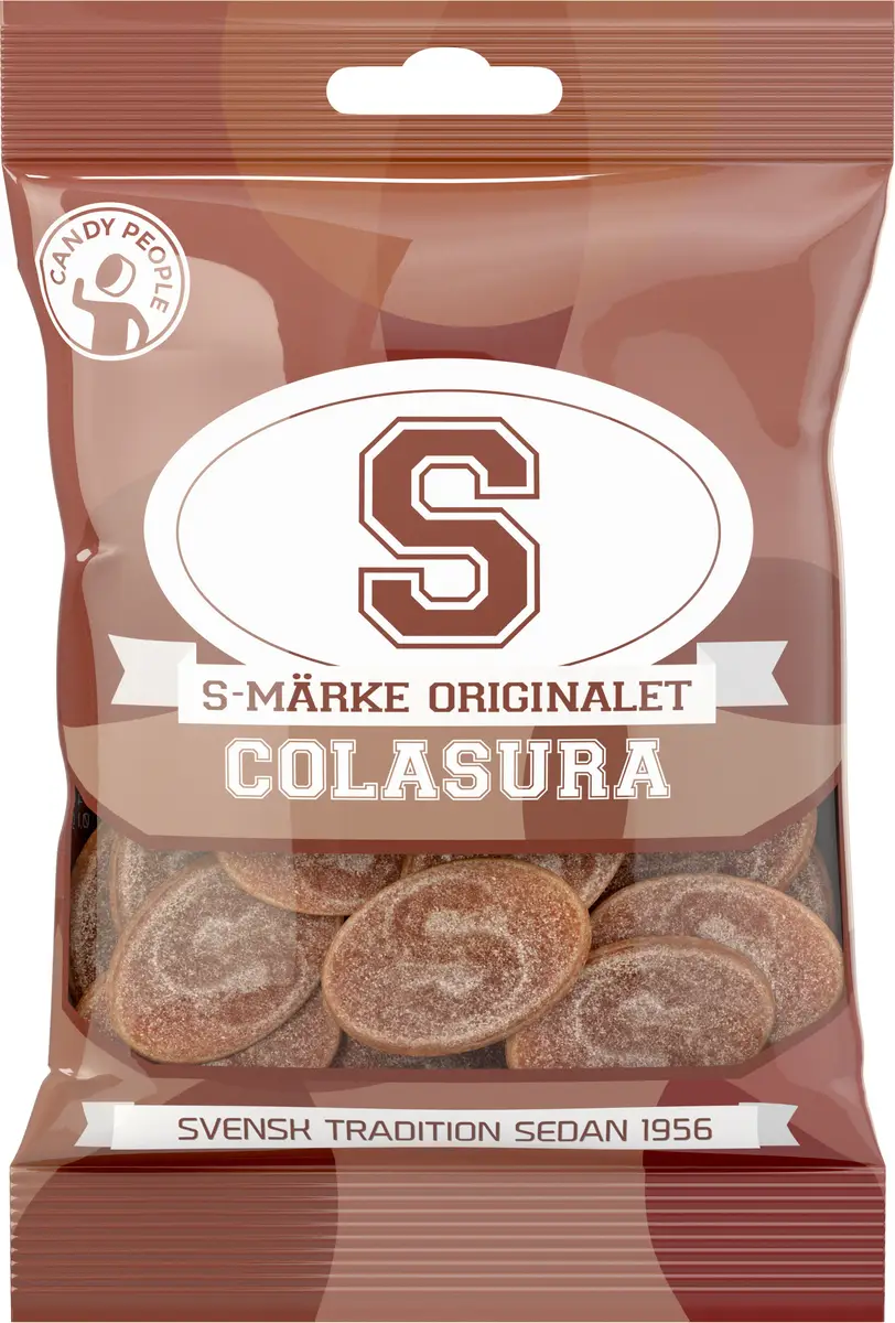 S-märke Colasura är en gelegodis som har ett sockeröverdrag med smak av cola. S-märke är en storsäljande klassisk favorit i godissegmentet bland såväl lösvikt som i påse. Genom åren har produkten kommit ut i flera olika smaker och finns idag både som gelegodis och i skumkonsistens. Du kan hitta S-märke i massa olika smaker.Produkten är tillverkad i Sverige och har varit en tradition sedan 1956.