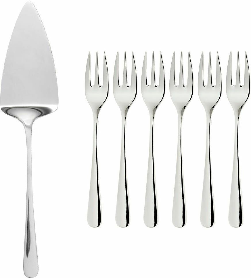 När det vankas födelsedagar och tårta utgör Sallie serveringsset ett fint inslag på det dukade bordet. Här får du en väldesignad tårtspade och sex tårtgafflar.