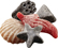 socker, glukossirap, glukos-fruktossirap, stärkelse, VETEMJÖL, modifierad stärkelse, ammoniumklorid (=salmiak), lakritsextrakt, fuktighetsbevarande medel (sorbitoler, glycerol), färgämnen (E153, E150c, E160c), salt, aromer, stabiliseringsmedel (E471).