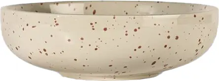 En rymlig skål perfekt för snacks, sallader eller middagens tillbehör. Den beige tonen med ett subtilt vinrött stänkmönster ger varje skål en varm och unik karaktär. Serien går dessutom fint att matcha med Coffee & More, för en harmonisk och stilfull dukning.