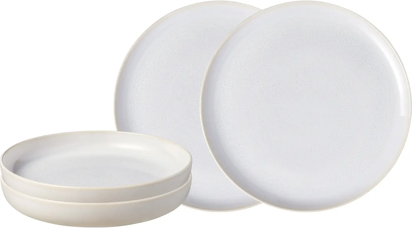 Tack vare den speciella reaktiva glasyren är ingen av delarna helt identiska, men var och en ger en personlig touch till bordet. Detta 4-delade middagsset består av två mattallrikar och två sopptallrikar.
