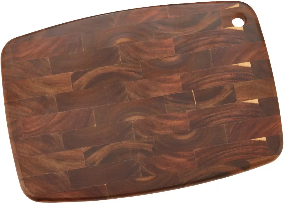 Utforska vår skärbräda - en perfekt kombination av stil och funktion. Tillverkad av ändträ i Akacia för överlägsen hållbarhet som ger den dess fina karaktär. Med sin eleganta design och praktiska storlek blir denna skärbräda ett oumbärligt tillskott till ditt kök. Uppgradera din matlagning med stil!
