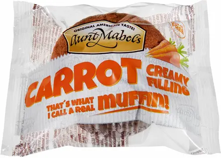 VETEMJÖL, socker, ÄGG, vegetabilisk olja (raps), fyllning 10 % (socker, sheafett, SKUMMJÖLKSPULVER, vegetabilisk olja (raps), YOGHURTPULVER, salt, emulgeringsmedel (solroslecitin), arom (vanillin), surhetsreglerande medel (citronsyra)), morötter 5 %, vatten, modifierad stärkelse, fuktighetsbevarande medel (glycerol, sorbitol), salt, jäsmedel (natriumvätekarbonat, dinatriumdifosfat) emulgeringsmedel (mono- och diglycerider av fettsyror), ÄGGVITEPULVER, kanel, stabiliseringsmedel (xantangummi), konserveringsmedel: kaliumsorbat, arom. Kan innehålla spår av SESAMFRÖN, SOJA, VALNÖTTER, HASSELNÖTTER, MANDEL, PEKANNÖTTER, SELLERI.